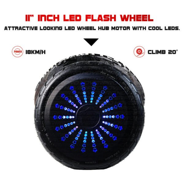 • LED FLASH WHEEL – Attractive-looking LED Wheel Hub Motor with Cool LEDs.