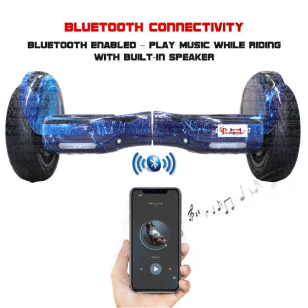 The Best H11 Off-Road Hoverboard for Sale in India is available now in the beautiful Milkyway edition at Pulseboard! It has been designed to ride on gravel, grass and rugged paths with ease. The design features heavy-duty 8.5-inch tires, and high-torque motors that make riding easy and stable on rugged paths.