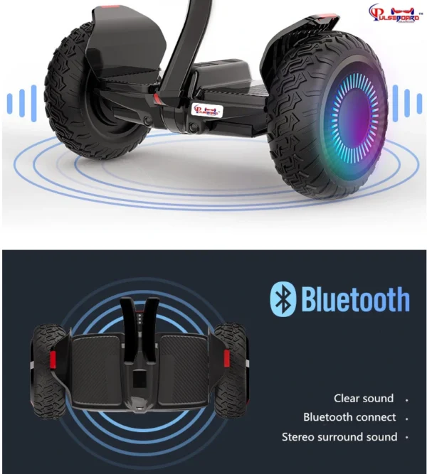 Our Hybrid Duo models come with front and rear LEDs, Top Wheel Arch LEDs, A waterproof charging port, and an On/Off Switch along with rugged 11-inch tires. It also has an in-built Bluetooth speaker as well.