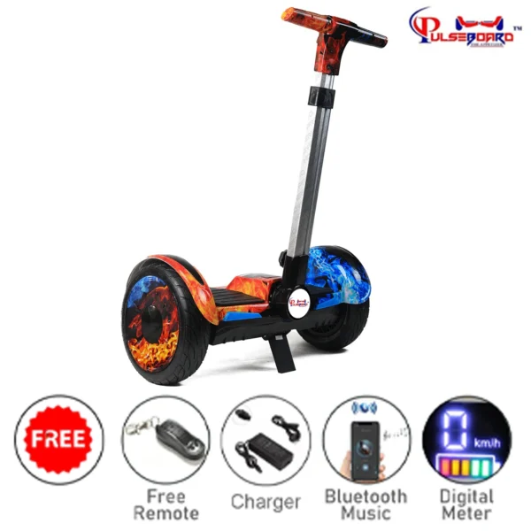 Experience the ultimate ride with the Mini Segway Hoverboard with Handle, featuring a 10.5-inch all-terrain wheelbase, Bluetooth connectivity, and advanced self-balancing technology—perfect for smooth, safe, and stylish rides across India.