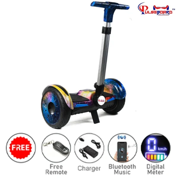 Experience the ultimate ride with the Mini Segway Hoverboard with Handle, featuring a 10.5-inch all-terrain wheelbase, Bluetooth connectivity, and advanced self-balancing technology—perfect for smooth, safe, and stylish rides across India.